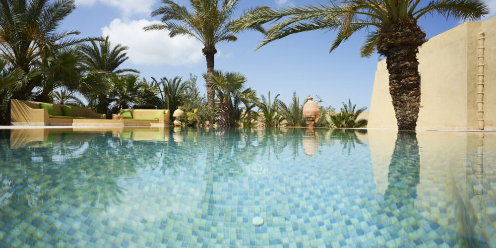 Les cinq Suites de 42 à 107m², avec leur salle d’eau, de deux à quatre personnes, sont imposantes, sobres et gracieuses ; vous êtes en paix. Deux d’entre elles vous donnent le privilège d’accéder directement à la piscine entourée des palmiers et de leur perpétuelle danse du feuillage qui vous entraine dans d’autres songes. Les éclairages bleus nuits confirment que vous vivez un moment d’exception.