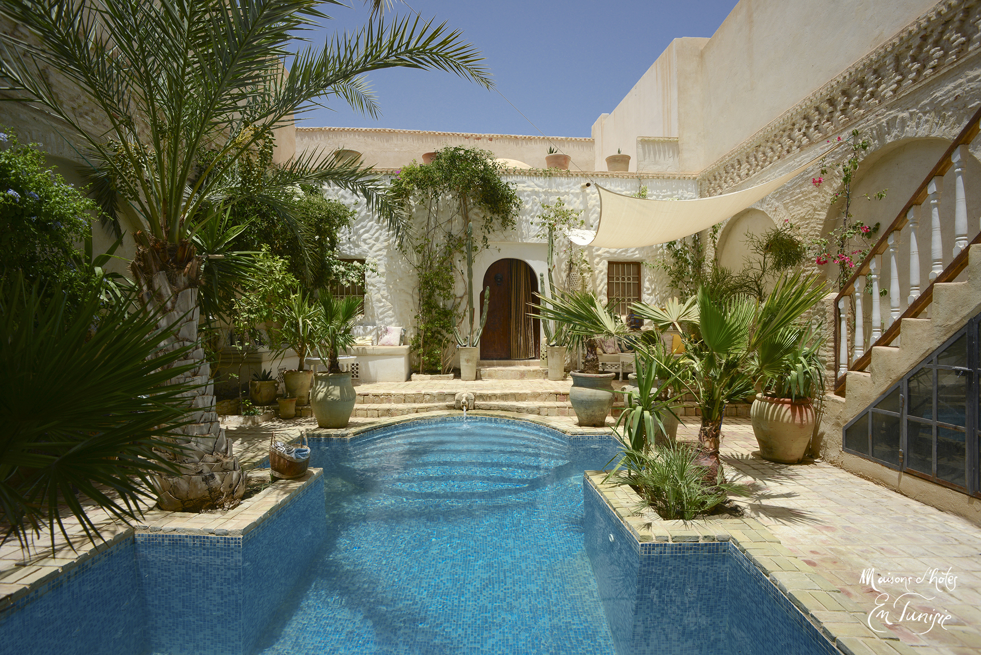 En explorant les dépendances du rez-de-chaussée, vous trouverez un jardin avec des plantes typiques de l’oasis et une piscine offrant une intimité rafraîchissante et tranquille, perturbée uniquement par le chant des oiseaux de l’oasis.