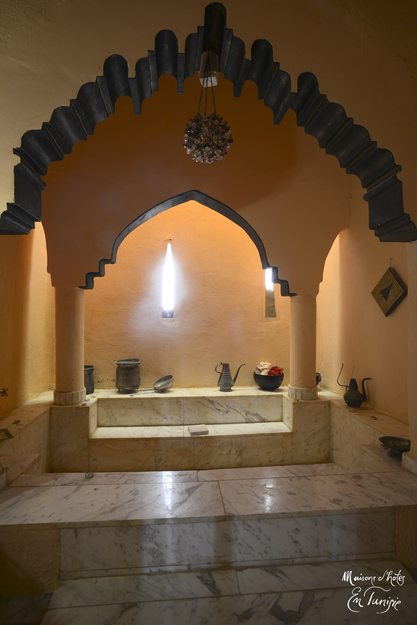Un hammam, au marbre blanc, où vous pourrez vous détendre et profiter d’un bain selon la coutume et des bienfaits des soins traditionnels.
